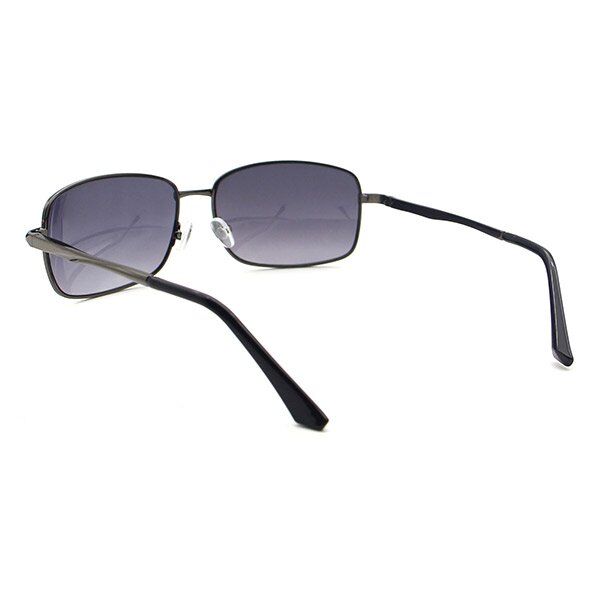 Small rectangle metal frame sunglasses, made of alloy metal and premium PC material lens, gunmetal frame with shiny black tips, and gradient lenses.